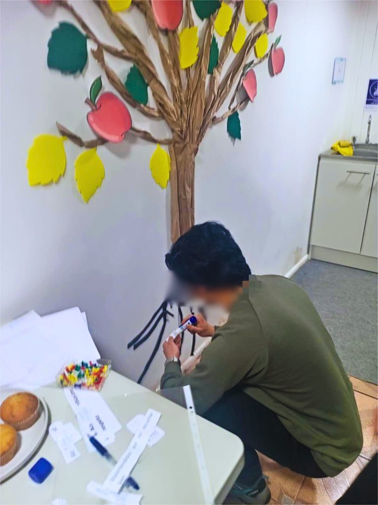 La jornada comenzó al mediodía con una bienvenida y presentación del espacio, seguida por una dinámica rompehielo y un conversatorio guiado. Posteriormente, se realizaron dos actividades principales: “Mi Árbol del Conflicto”, donde los jóvenes reflexionaron sobre las raíces y manifestaciones de los conflictos, y el “Árbol de Soluciones”, que invitó a pensar en caminos de transformación hacia acuerdos pacíficos.