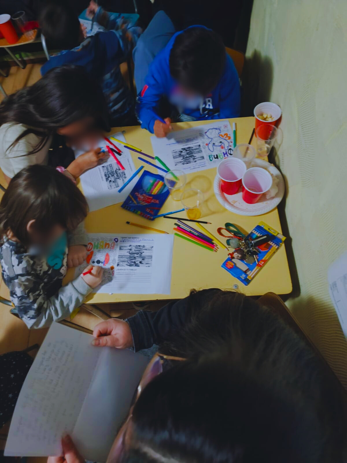 Para cerrar la jornada, cada asistente elaboró una tarjeta con su opinión sobre la moraleja de la película y el reconocimiento de una figura significativa en sus vidas. Este ejercicio permitió fortalecer los vínculos entre adultos y NNA, finalizando con la entrega de colaciones saludables y un dibujo de Stitch para llevar a casa.