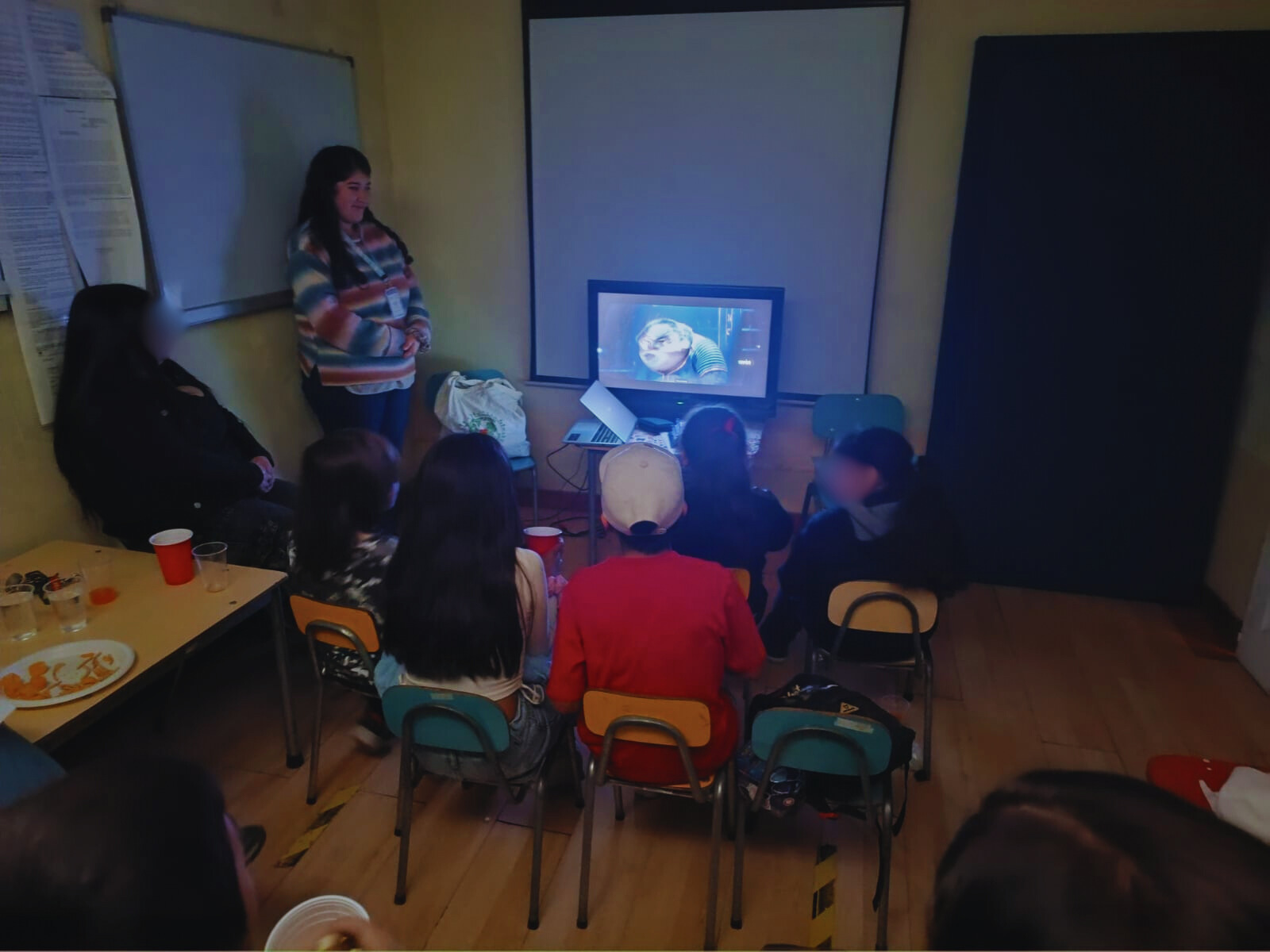 En un segundo momento, se propició un espacio de diálogo y reflexión guiado por el equipo profesional. Los y las NNA compartieron sus impresiones sobre la película, expresando emociones, dudas e ideas relacionadas con las temáticas abordadas. Además, se les invitó a identificar situaciones de la historia con las que se sintieran representados o representadas, promoviendo la empatía y la expresión emocional.