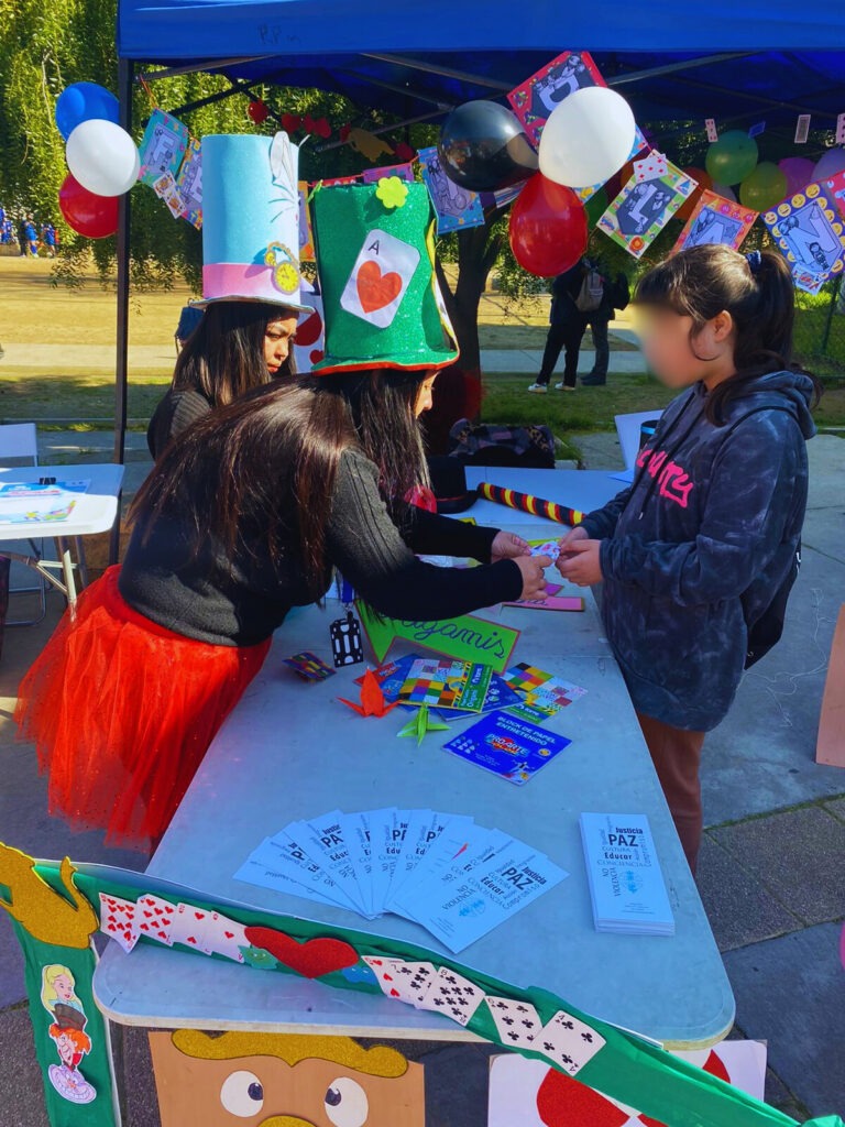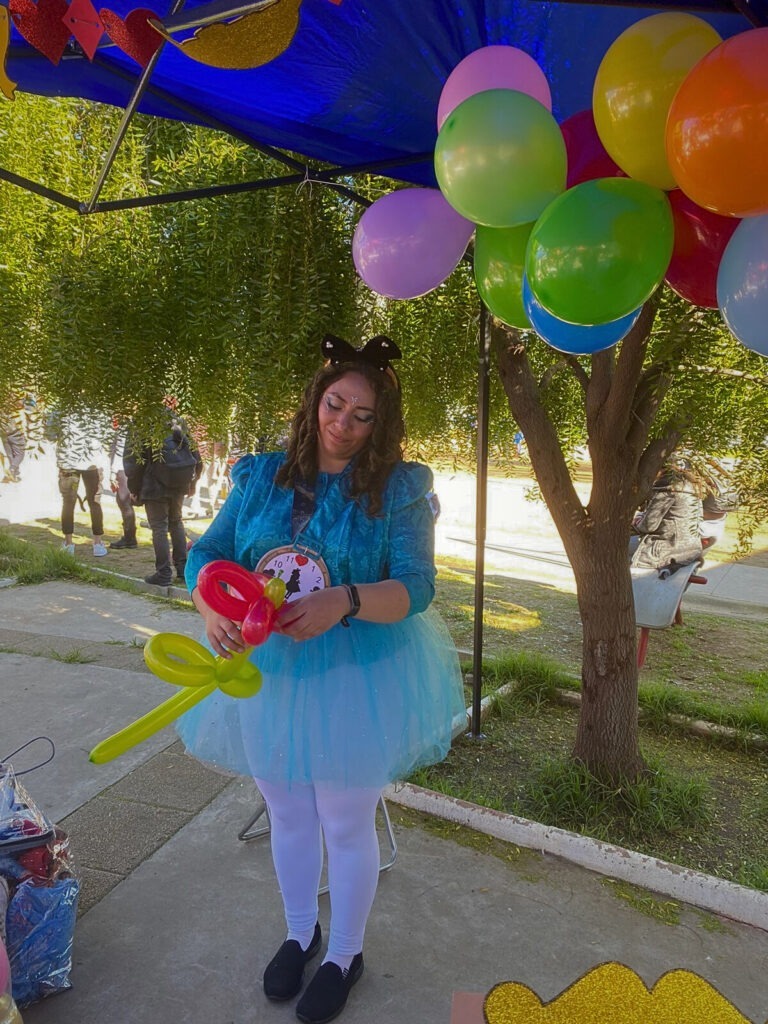 Además, nuestro PIE Manuel Guerrero instaló un stand con juegos interactivos dirigidos tanto a niños como a adultos, donde se realizaron instancias significativas como los “Susurros”, una propuesta de cuentacuentos a través de tubos que permitía a los participantes explorar sentidos a través de historias breves. También, se ofreció un taller de creación de grullas de origami y figuras con globos, enfocado en fortalecer los vínculos entre niños y adultos.